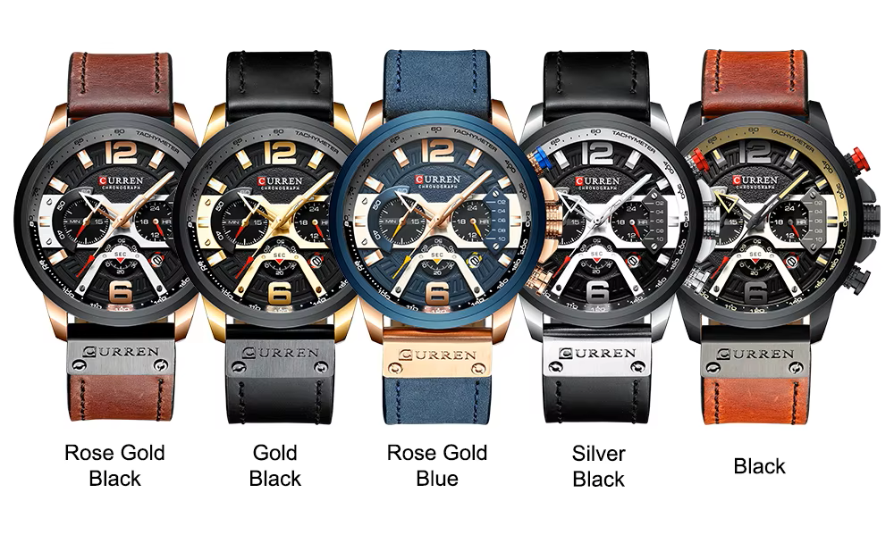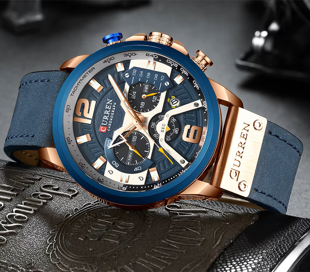 Elevate your style with the CURREN 8329 Men’s Chronograph Watch, a bold fusion of sport and luxury. Featuring a striking blue dial with rose gold accents, this multifunctional timepiece is engineered for precision and designed to impress.