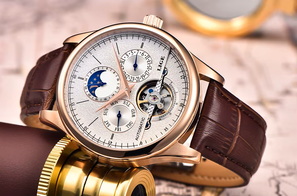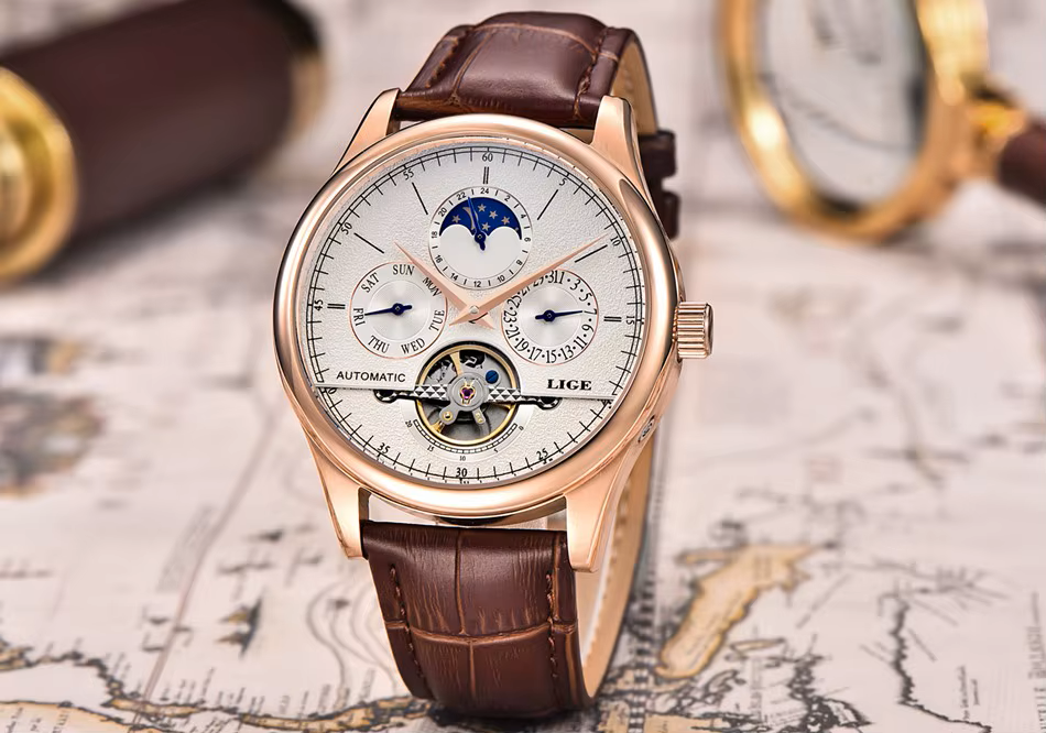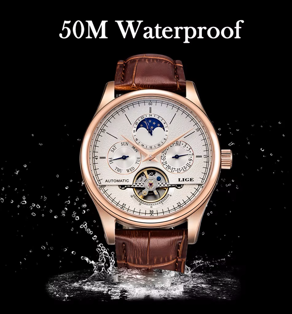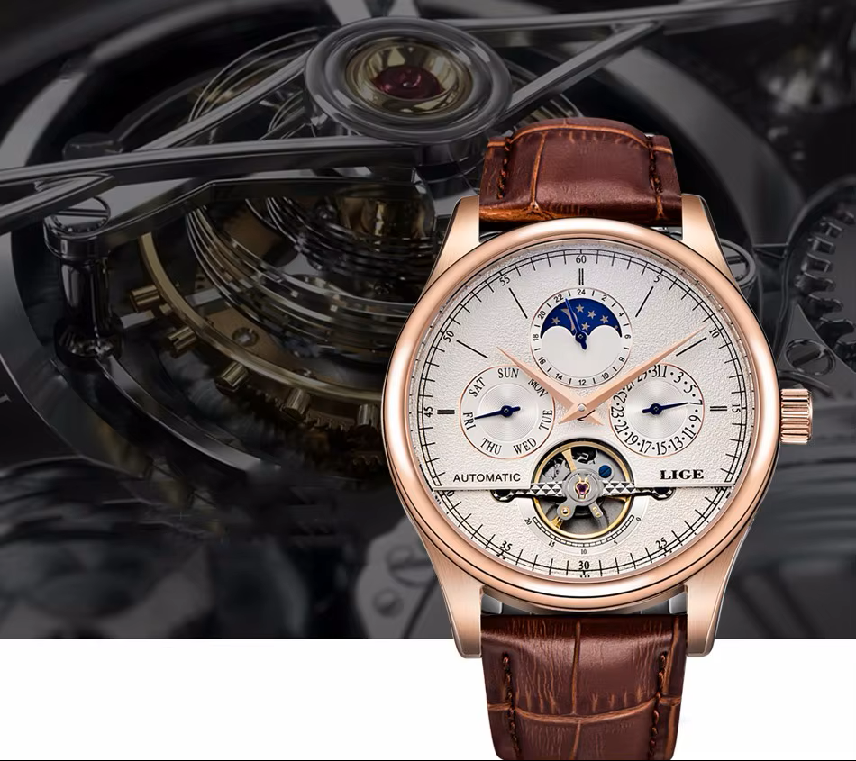 The LIGE 6826 is a luxury automatic mechanical watch designed for men who appreciate precision, elegance, and functionality.