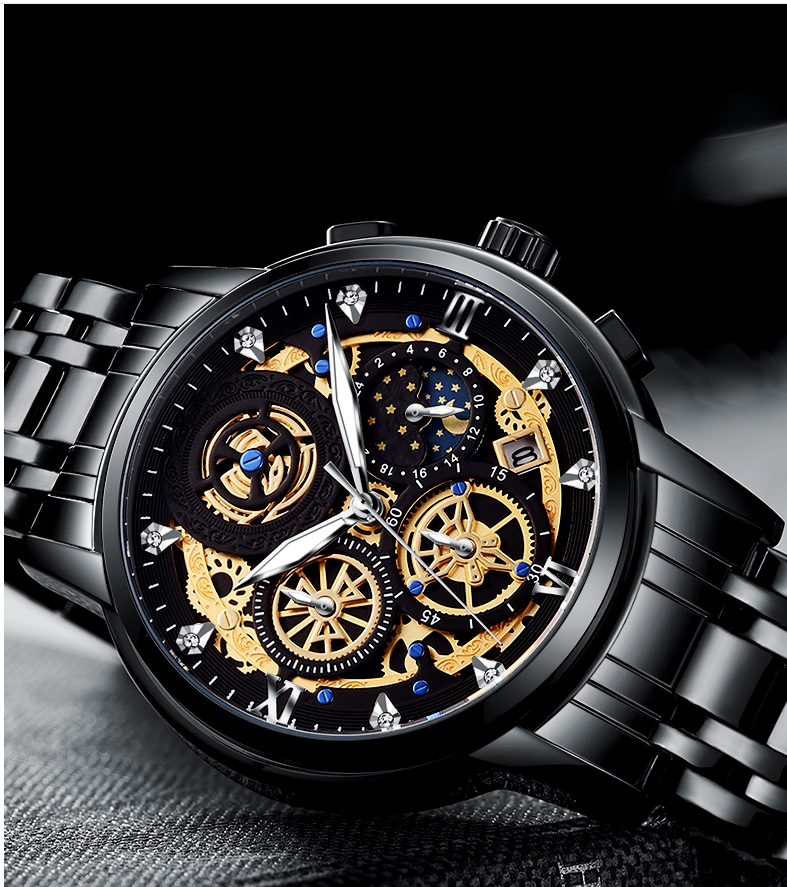 Experience precision, elegance, and innovation with the Weston WSD-133C – a masterfully engineered men’s quartz watch featuring a skeleton dial and moon phase complication.