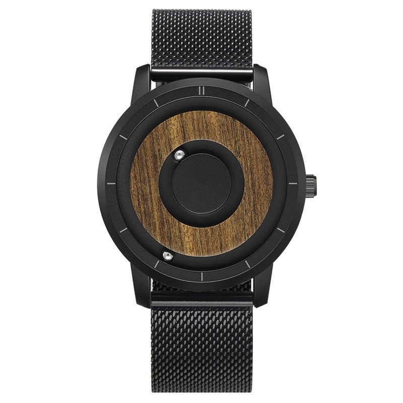 Wooden disk magnetic double steel ball personality creative no pointer trend quartz watch suitable for female and male couples
